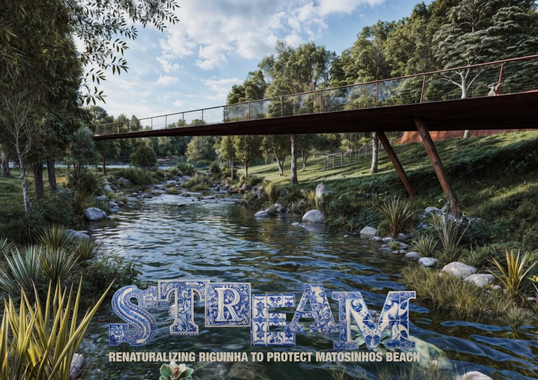 Jury Statement: The jury conducted a distinct evaluation specifically for universities that submitted three or more student projects completed within the academic curriculum. Based on this assessment, the University of Porto was awarded the University Prize. The Department of Landscape Architecture submitted three studio projects, all developed under the guidance of Professors Paulo Farinha Marques and José Miguel Lameiras. These projects focused on a stream corridor in Matosinhos, Porto, where students proposed a series of interventions that addressed both ecological restoration and public space activation. Their designs integrated green infrastructure strategies with carefully articulated bridge structures to enhance spatial connectivity and promote community engagement along the waterway.